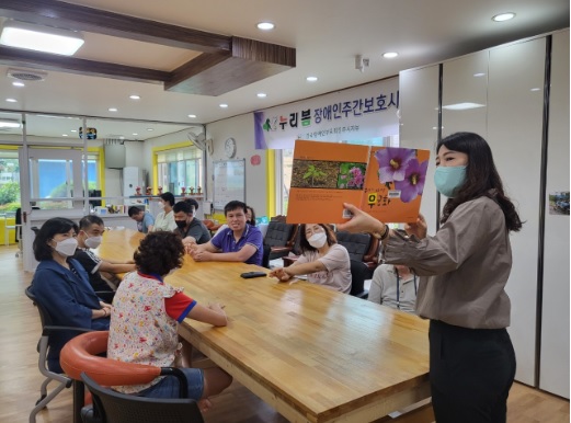 22/08/24/수요일 - 누리봄활동 작성자 정보 누리봄재활교사2 작성 작성일 2022.08.24 17:07 컨텐츠 정보 630 조회 목록 본문 오늘 오전에는 동화구연수업이있었습니다 ^^<우리의 나라꽃 무궁화> 책을 읽고 무궁화에 대해 알아보고무궁화 키링을 만들었습니다 ^^알록달록 다양한 무궁화 키링이 완성되었어요오후에는 실습선생님이 준비해오신스칸디아모스 액자 만들기를 했습니다 액자에 이쁘게 색칠을 하고 스칸디아모스를 붙여주었어요 ^^ 관련자료 이전 22/08/30/화요일 - 누리봄 활동 작성일 2022.08.31 09:05 다음 22/08/23/화요일 - 누리봄활동 작성일 2022.08.23 16:59 댓글 0 등록된 댓글이 없습니다. 로그인한 회원만 댓글 등록이 가능합니다. 목록